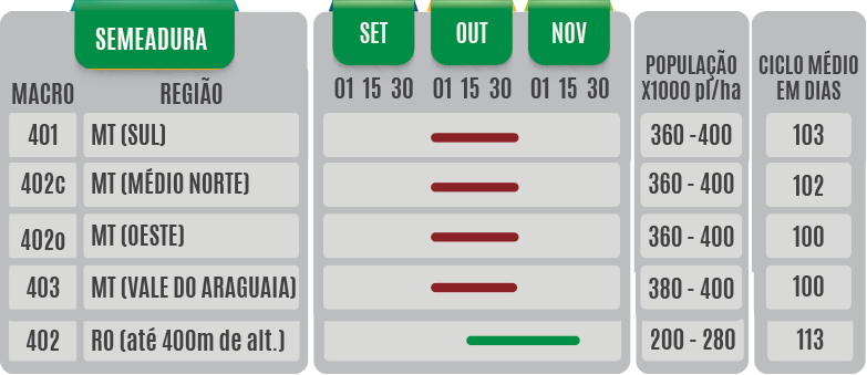 Variedade precoce, com alto peso de grão e elevado potencial produtivo.